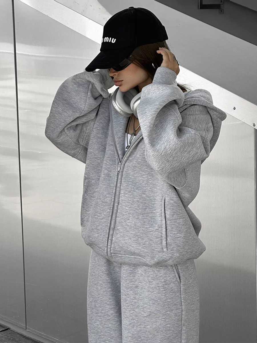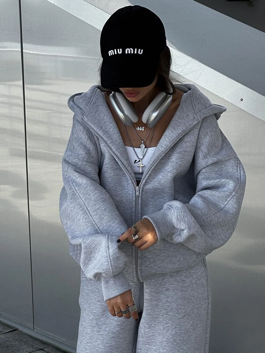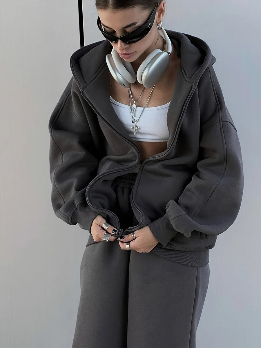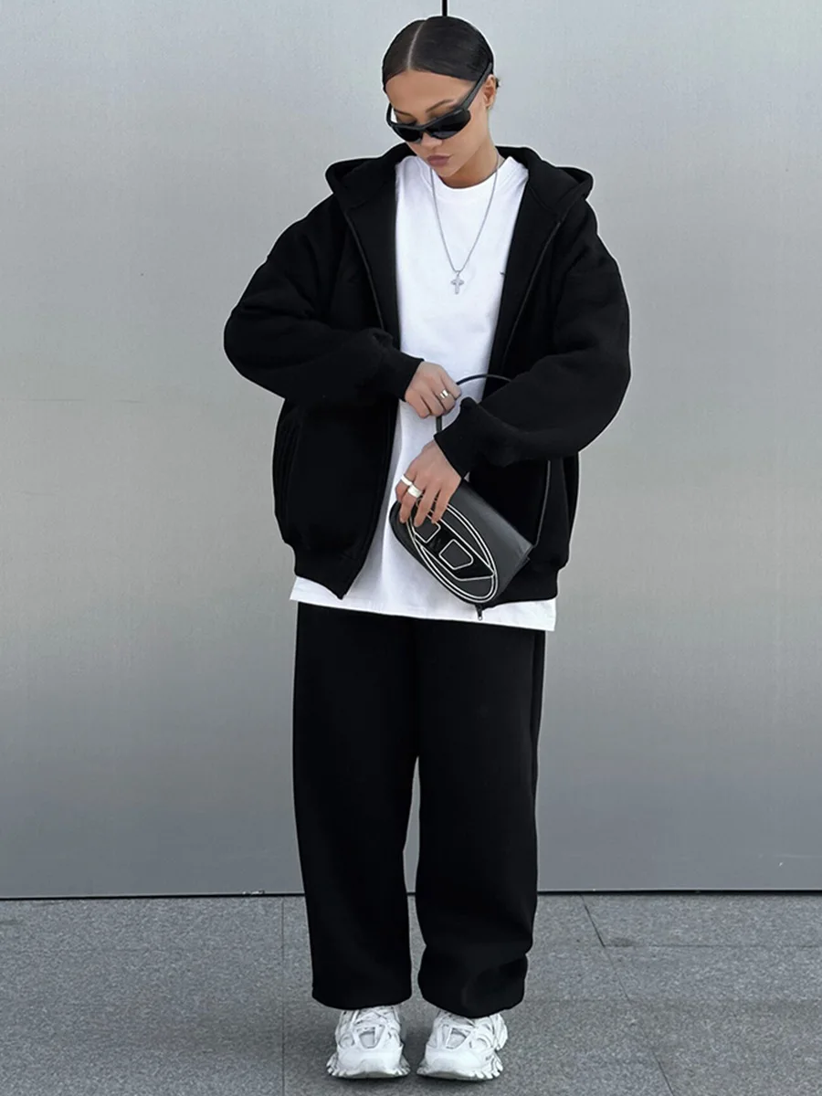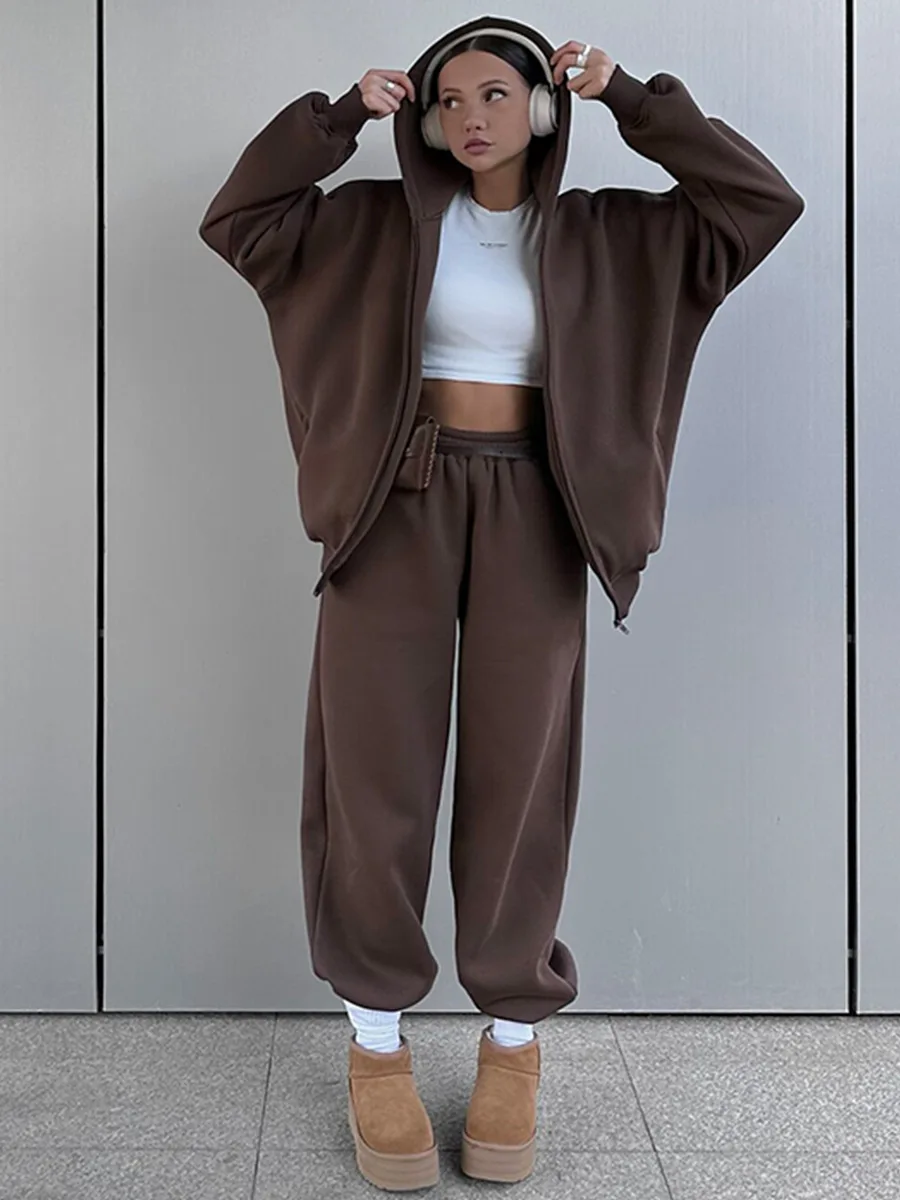 Conjunto de calças e fatos de treino para mulher, hoodies de manga comprida, calças lápis lisas, comprimento até ao tornozelo, bolsos, casual 2025 slim